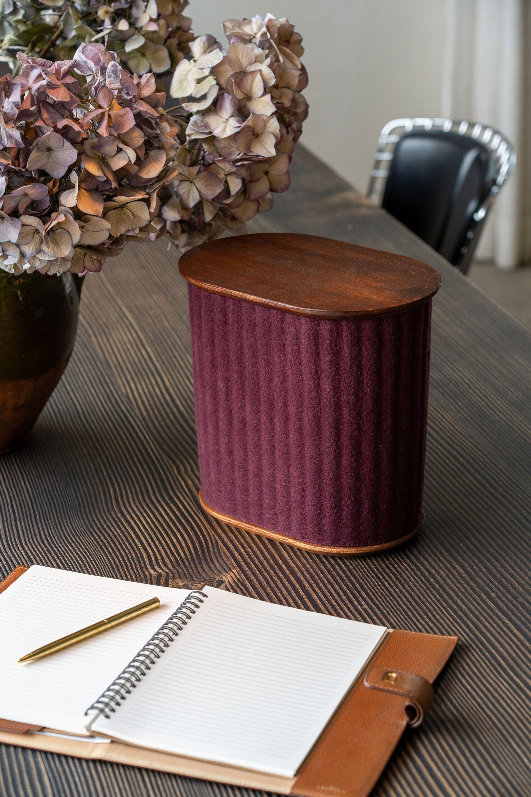 Gemaakt van duurzame, natuurlijke materialen — warm hout en zacht vilt — past QUYET moeiteloos in elk interieur.