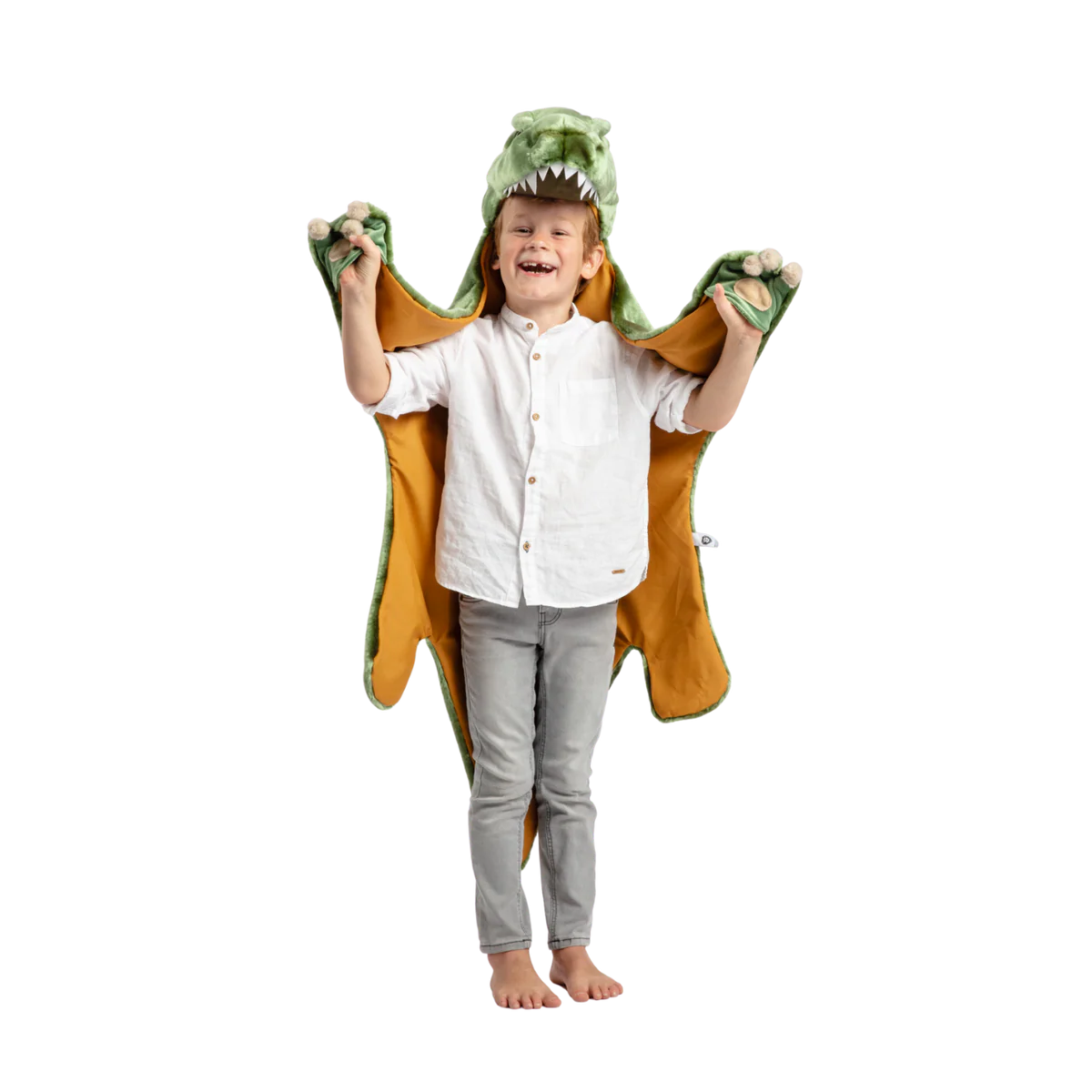 Ben je moe na een hele dag spelen? Gebruik je dieren-cape dan als warm dekentje om even onder weg te dromen.