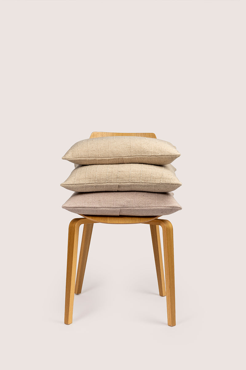 De Strata-collectie is het resultaat van een unieke samenwerking met de gerenommeerde architect John Pawson. Elk kussen wordt met de hand geweven op traditionele weefgetouwen, met een luxueuze mix van 84% merinowol en 16% kasjmier. Zo ontstaat een zacht, warm kussen dat de natuurlijke warmte van hoogwaardige vezels combineert met een strak, architectonisch design.