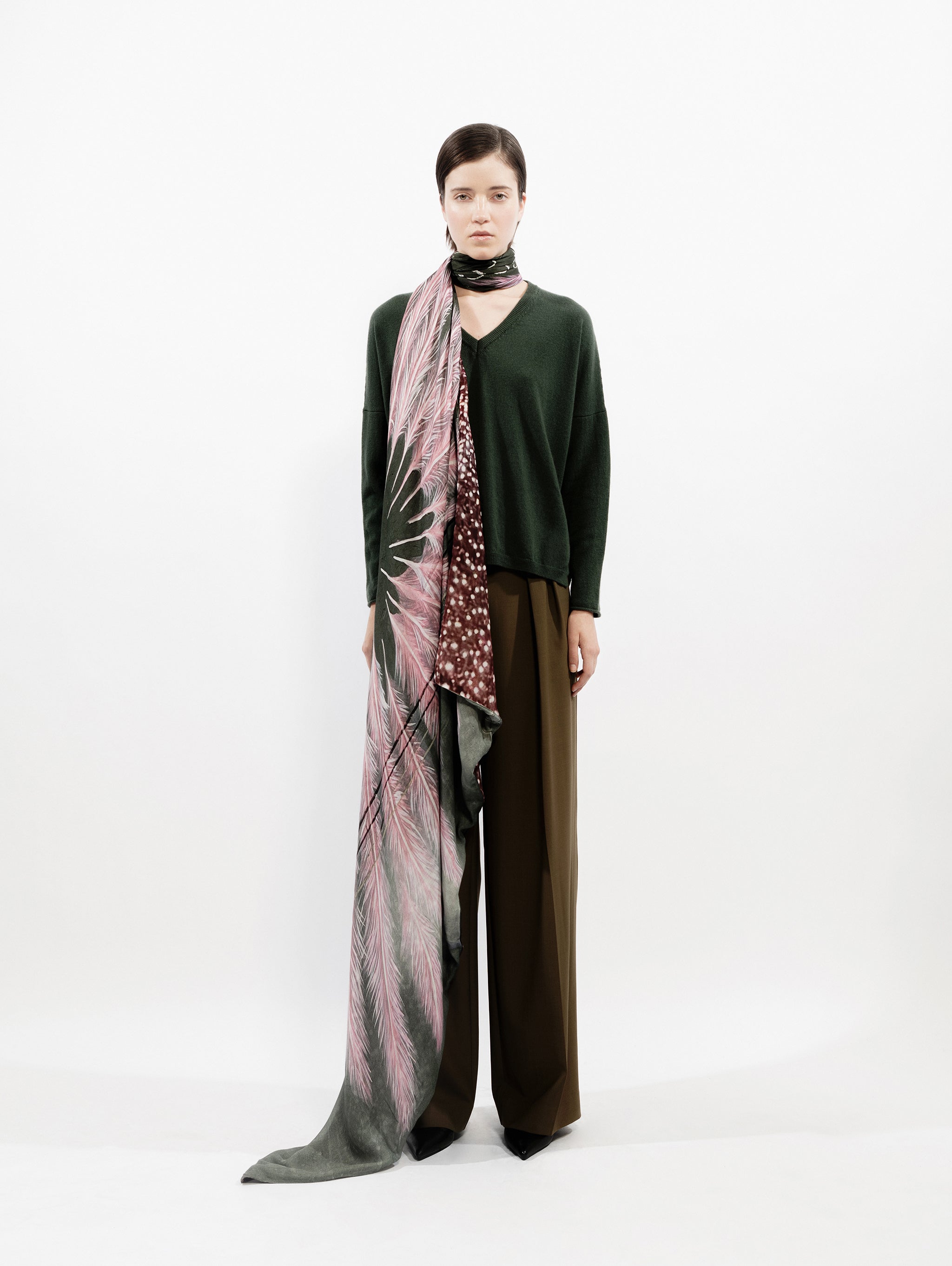 Dubbelzijdige, vierkante sjaal, gemaakt van een zachte, soepele mix van zijde en modal. Aan elke kant een all-over, haarscherpe print van een authentiek beeld.