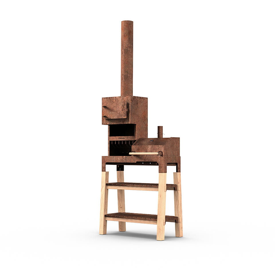 De Outdooroven XL past perfect bovenop deze houten XL Base. Onderin is er ruimte om kookgerei of haardhout op te bergen, waardoor je buitenkeuken helemaal compleet wordt.