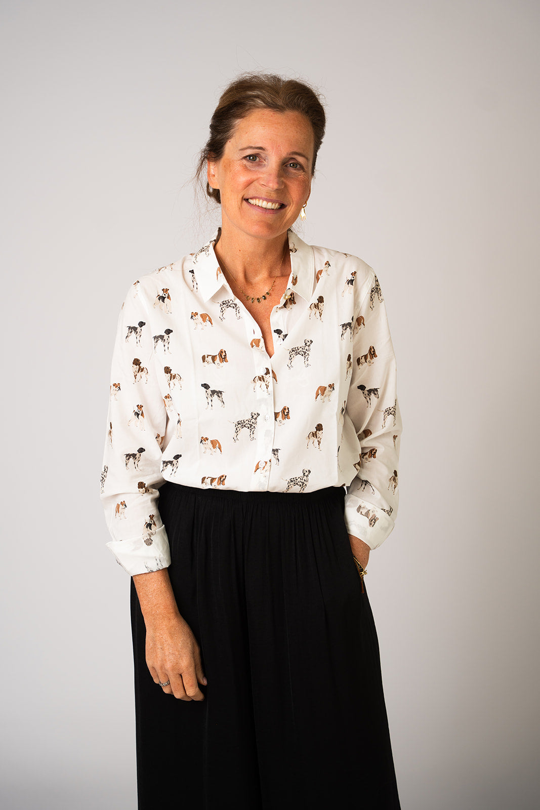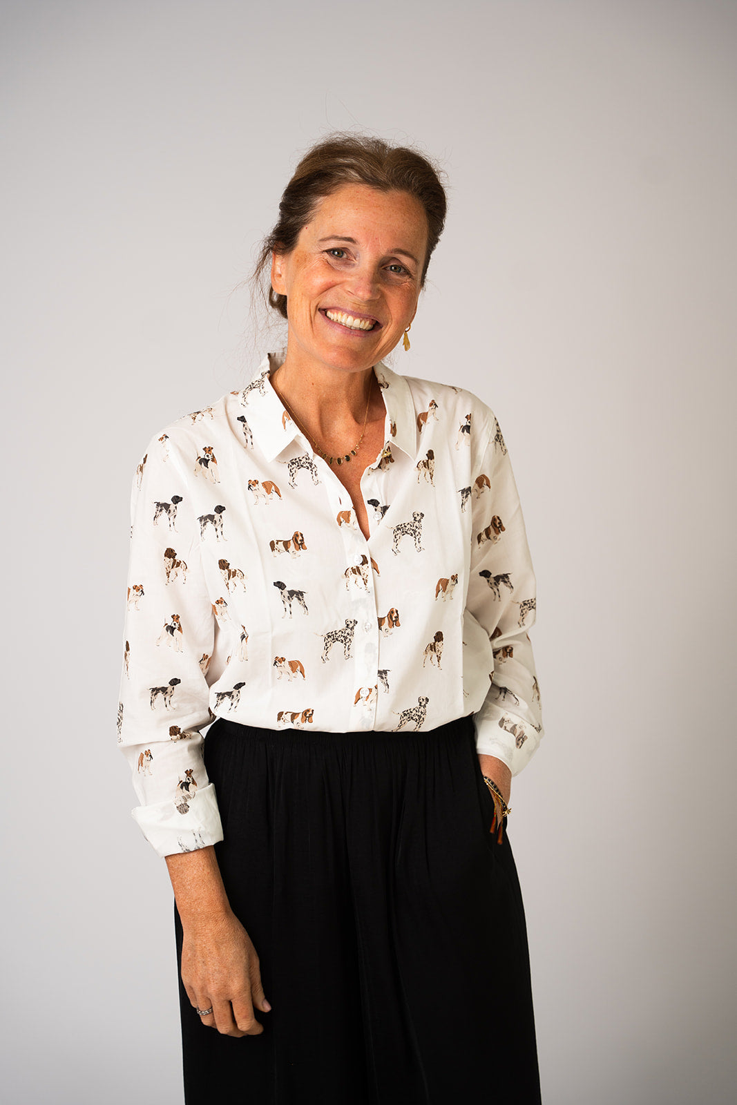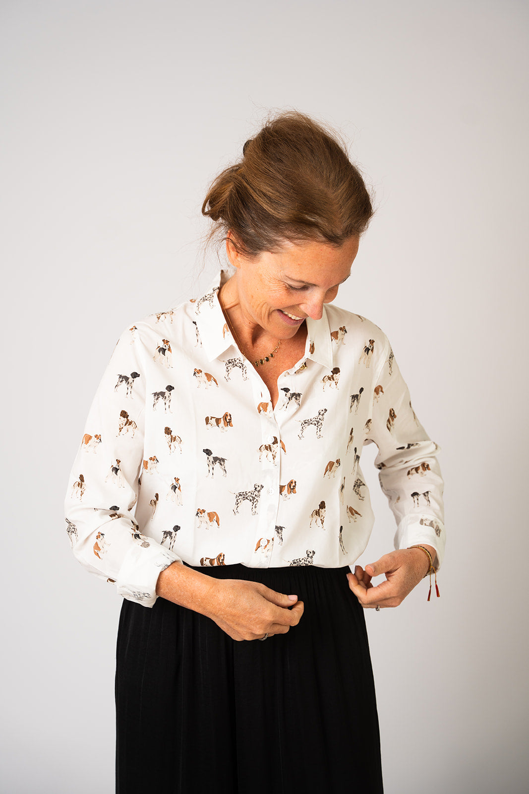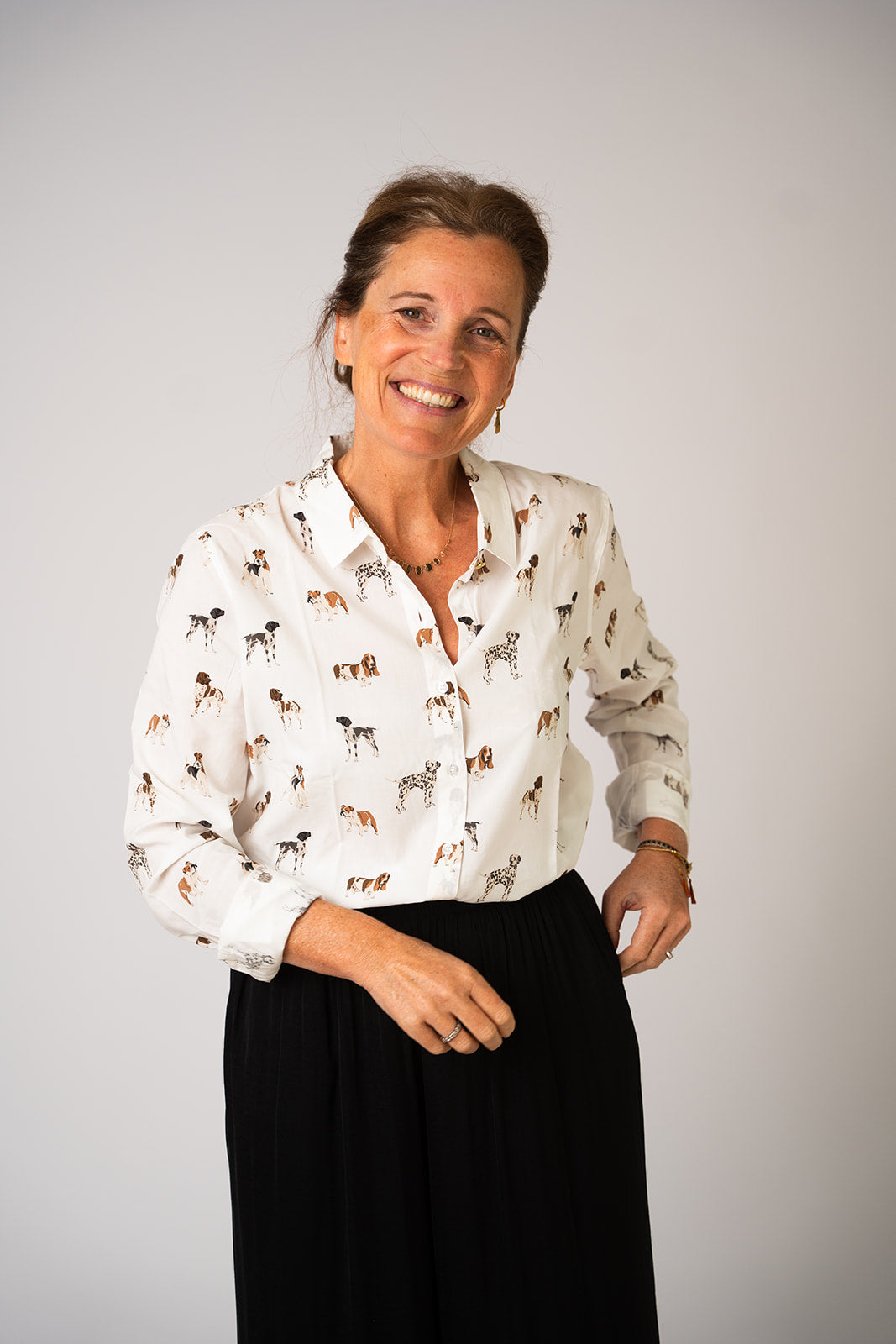 Een bloesje om meteen verliefd op te worden: subtiel, stijlvol en tijdloos. Met dit lieve hondenmotief draag je een klein stukje nostalgie mee, want mijn liefde voor Barbour gaat ver terug – mijn ouders verkochten het vroeger zelf in hun winkels.